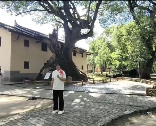 在瑞金叶坪红色革命旧址群中,一棵古樟树枝上悬挂的仿制炸弹吸引了实践团成员们的目光,大家在仔细阅读石碑上的文字记载后得知,毛主席在叶坪生活居住期间,常在这棵千年古樟树下阅读书报,并与群众亲切交谈。1933年春,国民革命军对叶坪实施了轰炸,这颗炸弹便是当时掉落在树枝中的。成员们驻足凝视,仿佛穿越时空,真切感受到当年战火纷飞的艰难岁月,对“红医精神”的诞生土壤有了更深刻的体认。