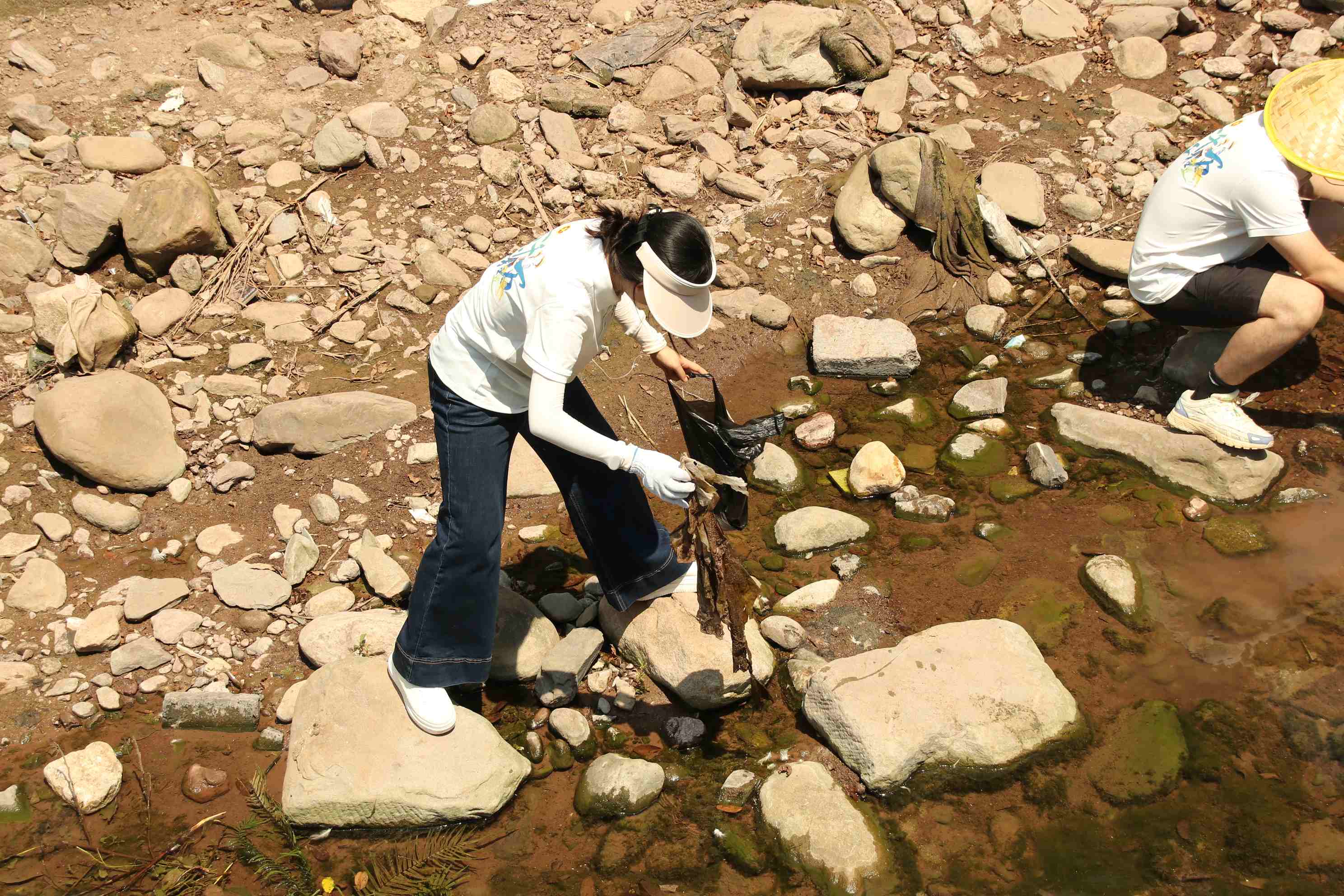 (图为团队成员拾捡河道垃圾 杨佳莉 杨白飞供图)