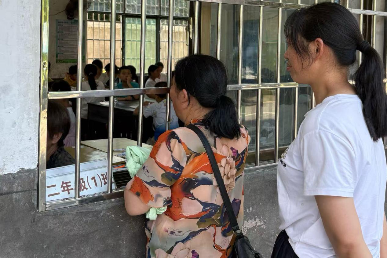 图为家长站在教室外守望孩子的身影 徐嘉俐供图
