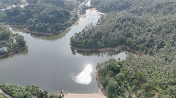 紧接着,突击队队员们前往高岗水库。水库轮廓形似海星,五条“星臂”向外延伸,每一角落的景致各异,丰富了沿岸的风光。水面如镜时,它倒映着两岸的翠绿植被,风起时则泛起粼粼波光。这座水库不仅承担着灌溉、防洪等重要功能,其周边优美的自然风光也具备极大的开发潜力。