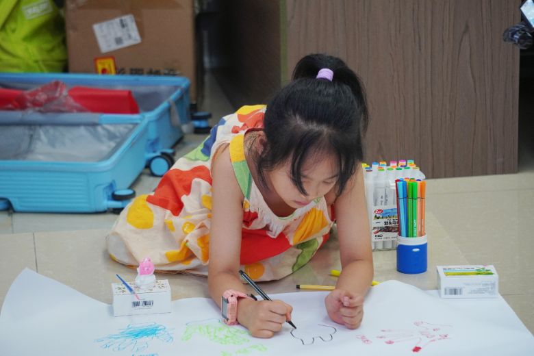 开班仪式上,22名社区儿童用五彩斑斓的手掌印完成专属签到,详细的课程安排与特色介绍后,志愿者通过“萝卜蹲”“时间胶囊”等破冰游戏,迅速拉近与儿童之间的距离,当日课程在一片欢声笑语中徐徐展开。
