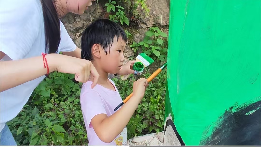 在墙绘过程中,团队成员们分工合作,有的负责勾勒轮廓,有的负责填充颜色,有的负责细节修饰。大家不畏炎热,认真细致地完成每一笔绘画。村民们也对墙绘工作给予了大力支持,帮助完成墙绘,提供了许多宝贵建议。