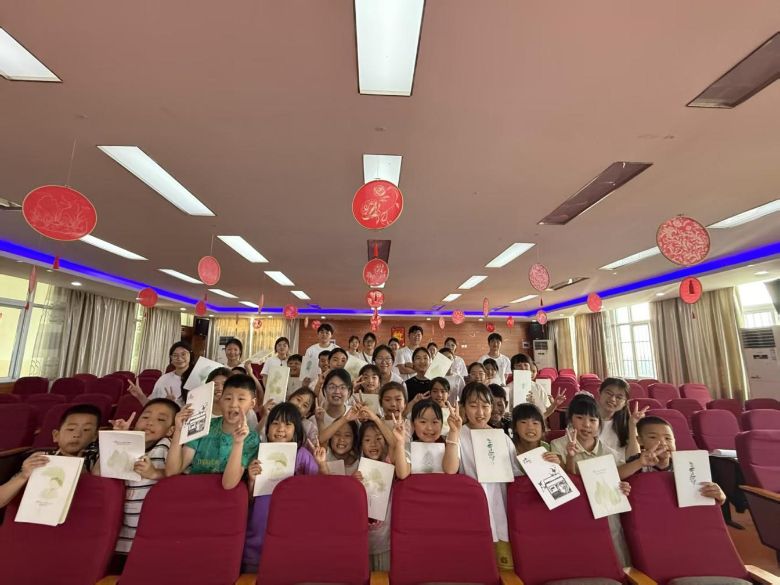 随后,在演播室里,团队成员和孩子们围坐在一起合影留念。快门按下时,有的孩子眼角泛着光,藏着这些天相伴的不舍,也装着对未来的期待,把这段夏日的珍贵回忆,牢牢定格。