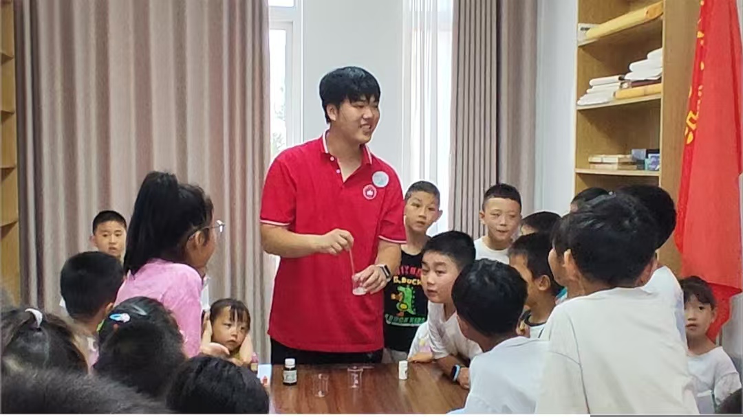 4日上午,实践团成员们满怀热情地来到毛坦厂,与当地的小朋友们相聚一堂。在精心准备的化学趣味实验环节中,实践团成员黄彩微化身“科学老师”,为小朋友们带来了一场别开生面的科学盛宴。