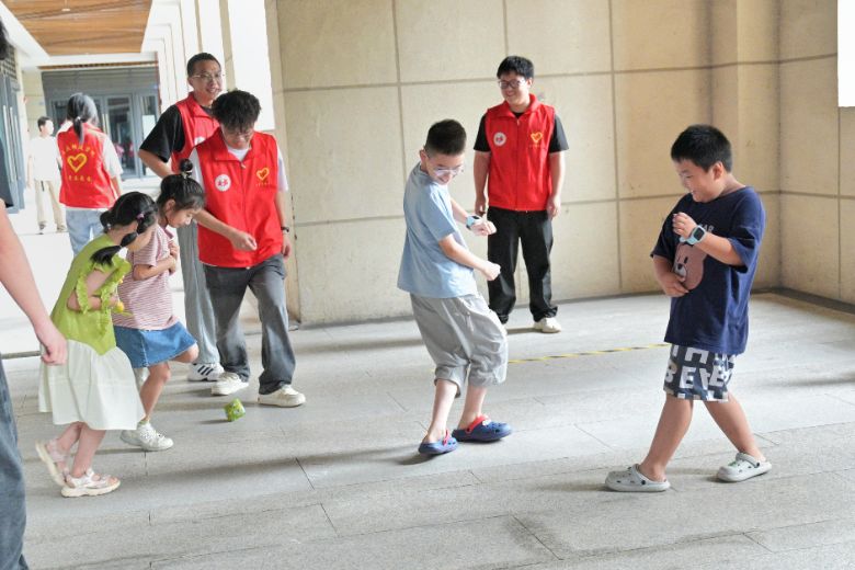 下午,社区迎来了暑期第一场趣味运动会。志愿者与小朋友们一起玩乐跳花绳、下象棋、打羽毛球、踢毽子……其中,扔沙包游戏最受欢迎,志愿者们首先示范游戏规则:将参与者分为两队,一队站在中间区域作为“目标”,另一队分列两端负责投掷。随着游戏开始,沙包在空中来回飞舞,孩子们灵活闪躲,当有人被沙包击中,现场就爆发出阵阵欢笑和掌声。志愿者们参与游戏,并指导孩子们掌握投掷技巧和躲避要,游戏过程中,孩子们逐渐领悟到团队配合的重要性,主动为队友加油打气,现场洋溢着孩子们的欢声笑语。每个项目都让孩子们在运动中收获快乐。这场融合了传统体育与益智游戏的运动会,不仅锻炼了孩子们的身体素质,也培养了他们的团队协作能力,更为孩子们的暑期生活增添了“橙”活力。