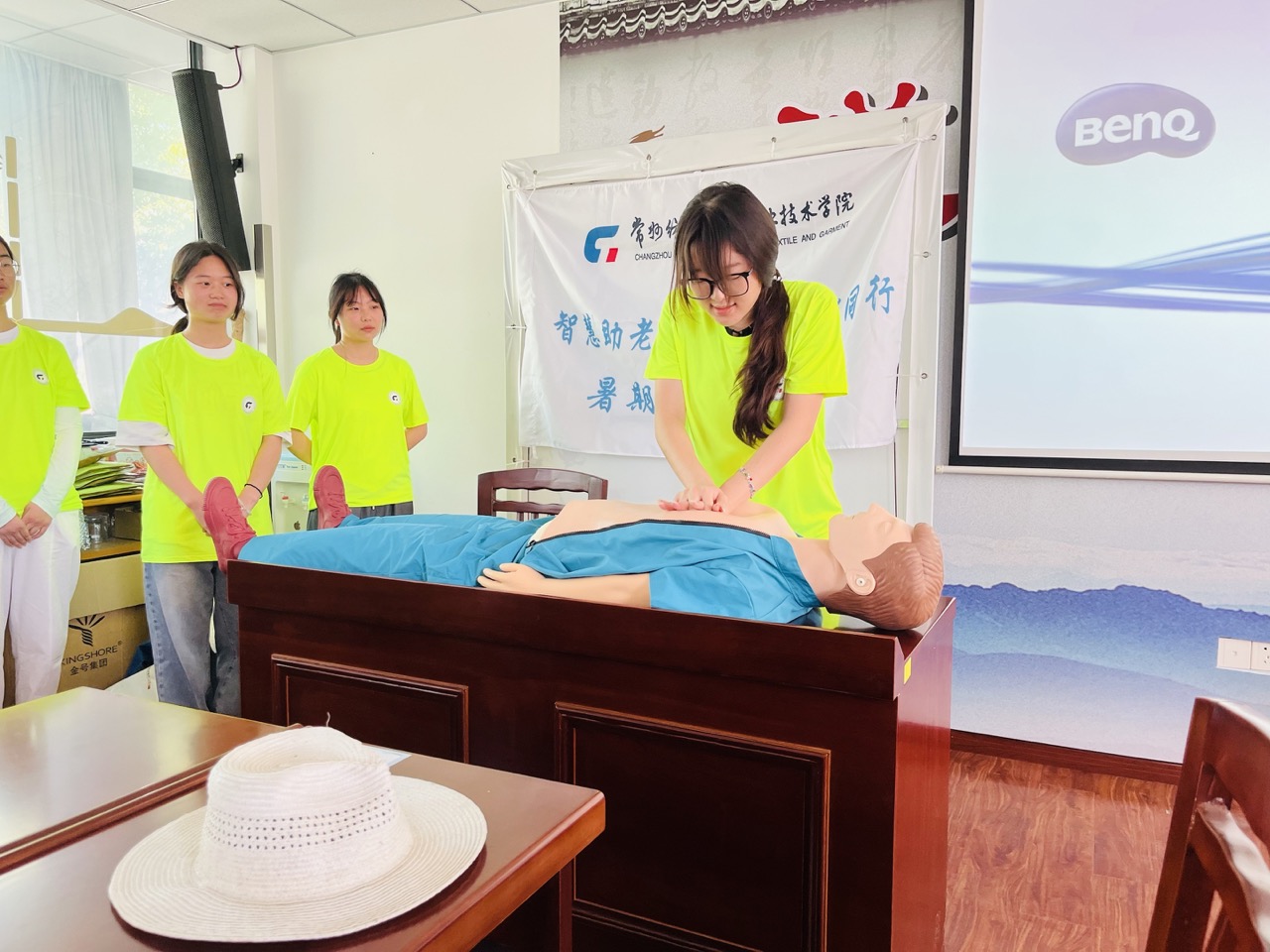 近日,“智慧助老 e路,安全护老同行”实践团队走进江苏省武进区牛塘镇竹园社区文化活动中心,为社区老年人带来一场实用的急救知识讲解及现场演练活动,用专业知识守护老人的“平安晚年”。