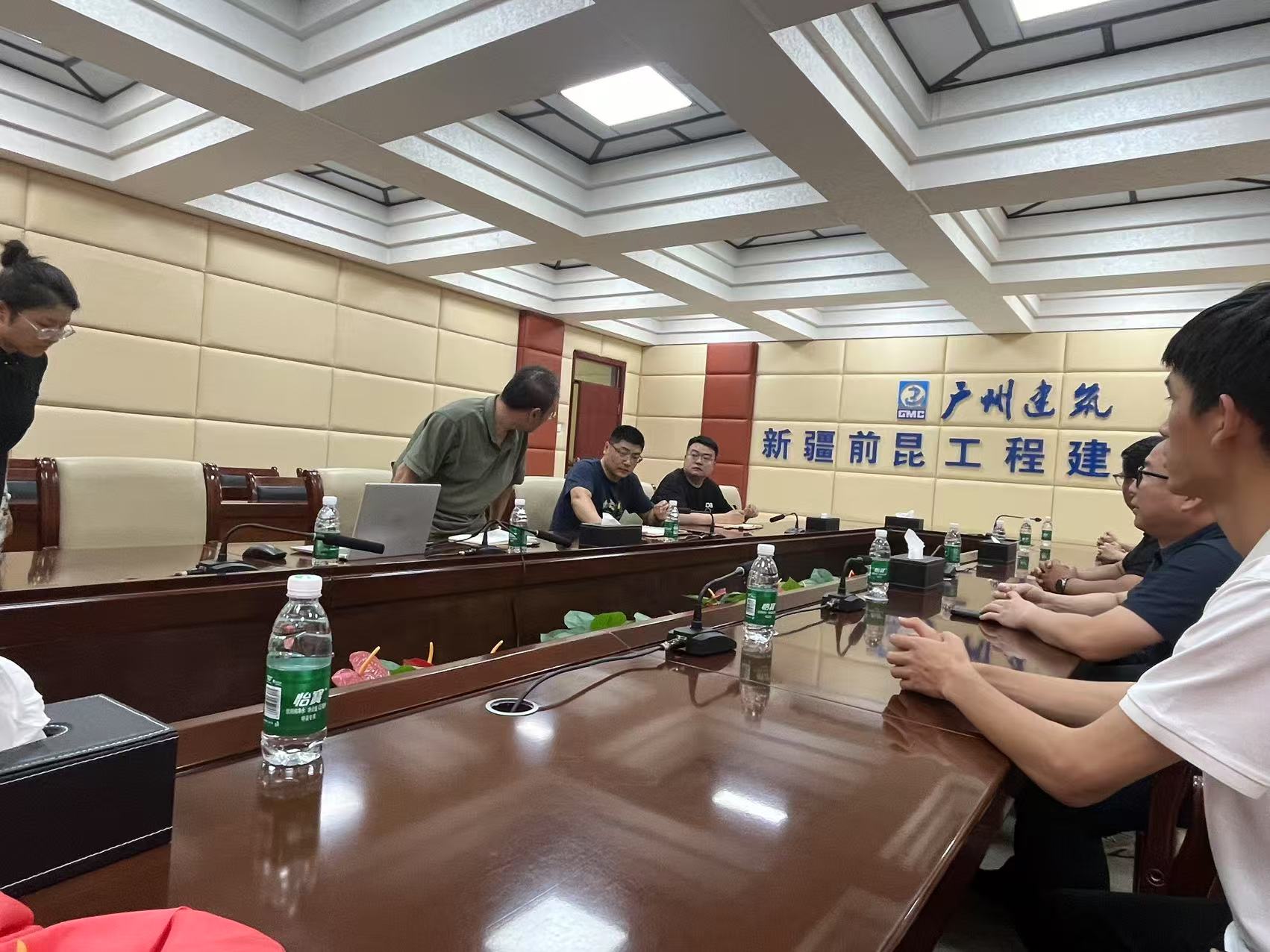图为本次座谈会中,暑期三下乡团校外指导老师黄维老师为校团委老师介绍新疆前昆工程建设集团有限责任公司简介 胡前供图
