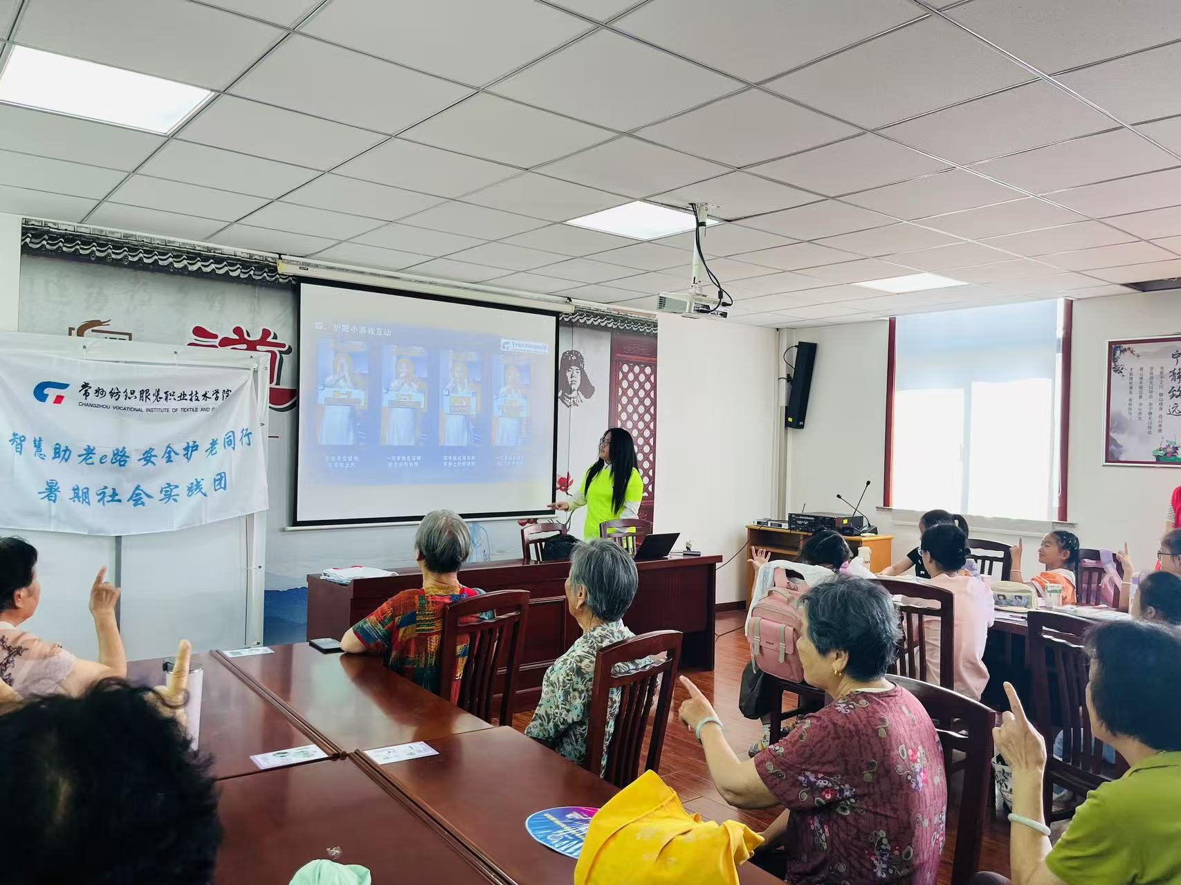 近日,常州纺织服装职业技术学院 “智慧助老e路·安全护老同行” 暑期实践队,在江苏省常州市武进区牛塘镇竹园村开展了一场意义非凡的爱眼知识普及活动,为老年人的眼部健康保驾护航。