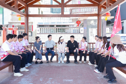 骄阳炙烤着大地,却挡不住服务队队员们的热忱。在漳州澳角村,服务队与澳角村共建“社会服务与实践基地”,社会实践基地的授牌仪式简约而庄重,这不仅是一块牌匾的交接,更是一份“教育助力乡村”的承诺。与村委会的座谈中,队员们认真聆听渔村的发展故事,从产业转型到政策落地,从村民期盼到未来规划,每一个细节都被细细记录——这些鲜活的素材,终将化为课堂上的案例,让更多学子读懂乡村振兴的深层逻辑。