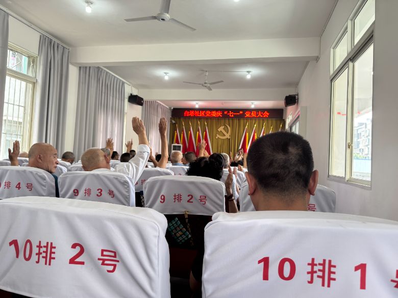 白塔社区全体党员举手表决相关事项 匡彧摄
