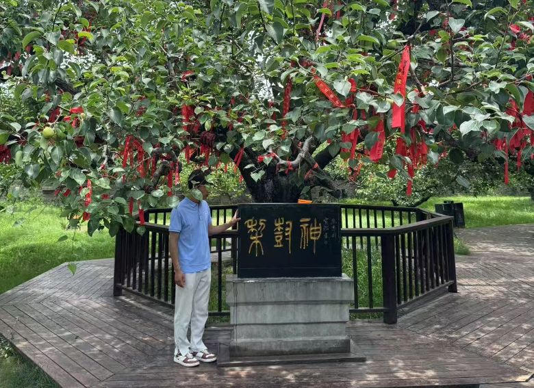 (图:实践队员在梨树神前驻足凝思。汪青坪 供图)