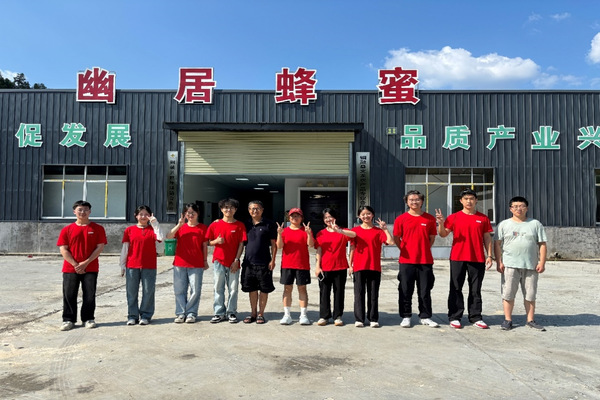 下午两点半,带着上午的实践收获,实践团师生前往“幽居蜂蜜工厂”进行深度考察。工厂负责人王国挥介绍了幽居村的“明星产品”——纯天然的树参蜜以及来自宜丰的优质百花蜜。同时讲授了铜鼓蜂蜜产业的发展历程、树参蜜的独特价值,以及现代化、标准化的蜂蜜加工与质量控制流程。在调研中,实践团了解到长期以来,受限于SC认证缺失,当地蜂蜜难以进入正规销售渠道。去年6月,在铜鼓县供销社的帮扶下,幽居蜂蜜成功获得SC认证,并通过成立供销公司、规范使用“供销”标识等举措,有效提升了产品知名度和市场竞争力。从政策扶持到认证指导,再到品牌打造,这一系列举措让大家看到了铜鼓县政府对乡村产业的大力支持以及基层干部的责任担当。