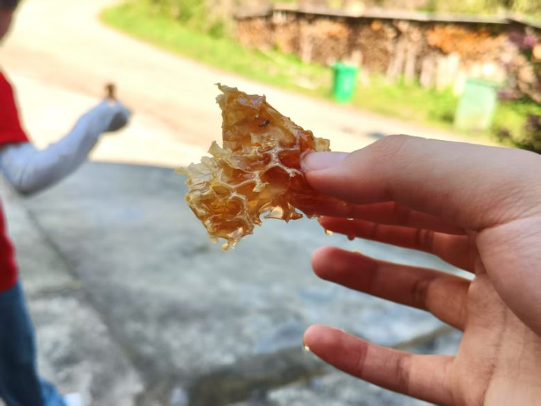 亲手参与采摘的蜂蜜,感觉格外香甜!”品尝到劳动成果的同学们,对这份大自然的馈赠赞不绝口,也深刻体会到蜂农劳作的艰辛。这份独特的体验激发了大家支持乡村产业的热情,同学们纷纷踊跃购买这价格亲民且功效十足的树参蜜,将这份“铜鼓的甜蜜”和背后的故事分享给家人朋友。一罐罐蜂蜜的成交,不仅是简单的消费,更是学子们对当地产业的支持和对这份浓厚“人情味”的真挚回应。