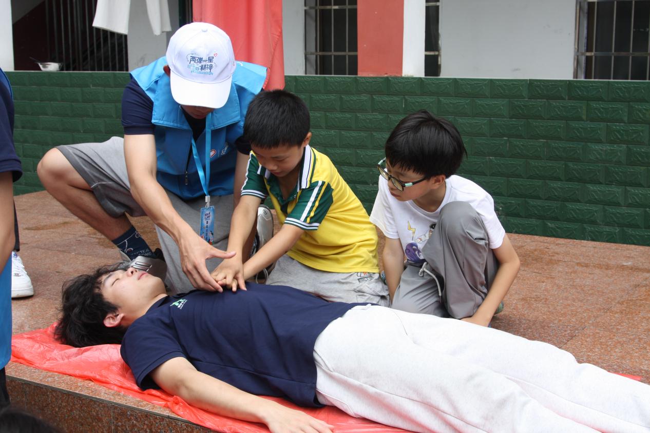 图为团队成员指导学生掌握心肺复苏 供图 谢雨芹