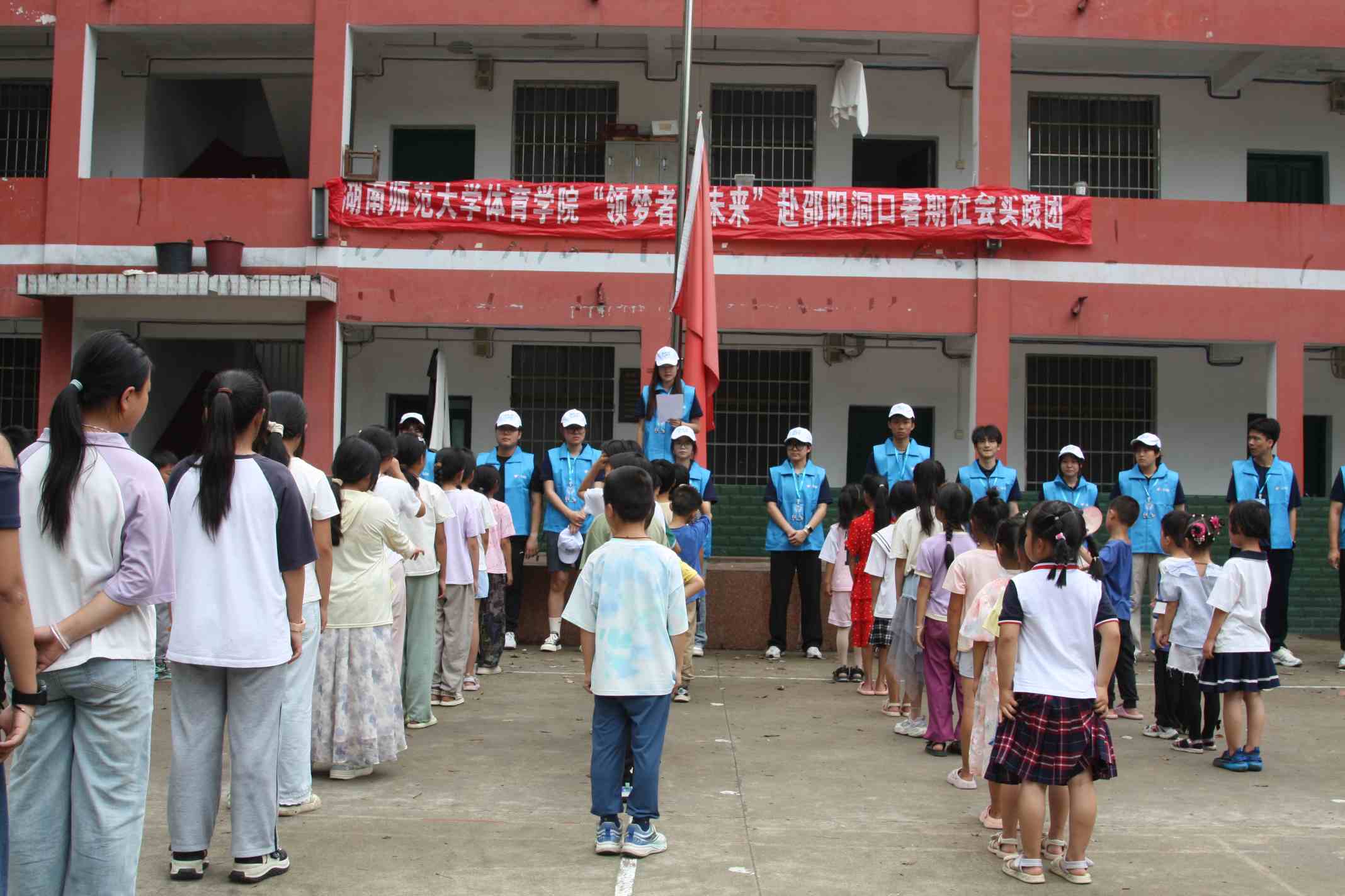 ( 通讯员 谢雨芹 梁艺萱 胡可可)为增强学生的安全意识和自我保护能力,7月11日,湖南师范大学体育学院“领梦者·未来”暑期社会实践团在邵阳市洞口县渣坪乡九年一贯制学校开展了一场以“安全教育伴我行”为主题的安全教育日活动。该活动响应了国家关于加强校园安全教育的政策要求,旨在通过多角度、全方位的安全教育,提高乡村学生的安全意识和自我保护能力,为乡村校园安全建设贡献力量。活动通过消防演习、安全知识讲解、紧急避救动作教学、防毒面罩佩戴演示和消防器材使用教学等多种形式,为学生们带来了一堂生动有趣、意义非凡的安全教育课。