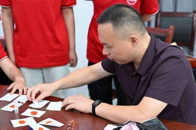 下午的鲁米诺发光实验成焦点。在朱成峰老师指导下,队员提前配置试剂并排除安全隐患。孩子们分组操作,当两种液体混合时在黑暗中绽放幽蓝光芒,孩子们的惊叹声此起彼伏,亲手实践的自豪感让科学探索的种子悄然萌发。实验后,“数字炸弹”游戏登场。孩子们在猜数互动中释放压力,锻炼数字敏感度,欢笑声充满现场。
