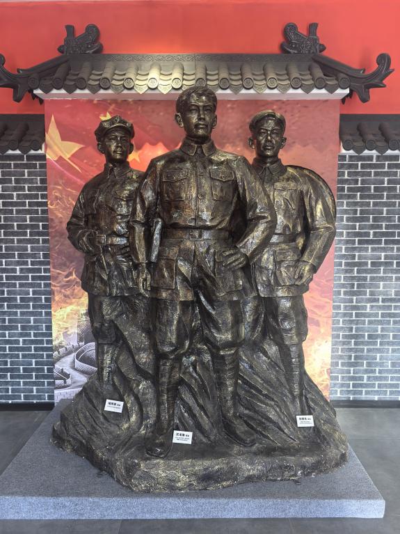 走进棠溪革命历史纪念馆,馆内矗立的雕像令人印象深刻:吹号角的战士雕像身姿挺拔、神情坚毅,仿佛正以激昂的号声唤醒人们对革命岁月的记忆;“枪杆子里出政权”的红色标语,彰显着革命先辈武装斗争、追求胜利的坚定信念;多位革命志士并肩而立的群雕,目光如炬、气势如虹,传递出团结战斗、为理想拼搏的无畏勇气。这些雕像与文物展品相互呼应,全方位构建起棠溪革命历史的生动图景。