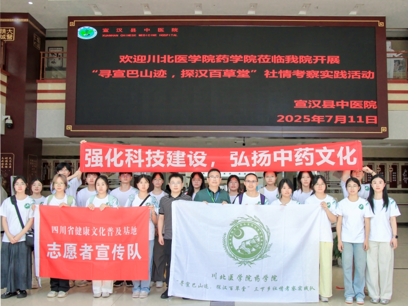 为促进药学学子职业体验认知,弘扬中医药文化精髓,推动理论与实践深度融合,7月11日上午,川北医学院药学院“寻宣巴山迹,探汉百草堂”实践队走进宣汉县中医院,开展了一场富有成效的学习实践活动。