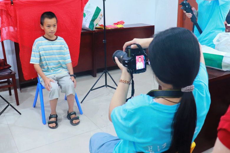 在志愿者的引导下,小朋友们自信大方地面对镜头。薄薄的证件照握在小朋友小小的手心时,青春稚嫩的脸庞上是藏不住的笑意。