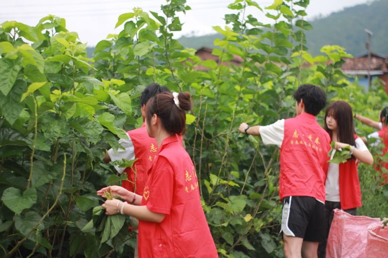 图为志愿者们采摘桑叶团队成员朱佳音供图