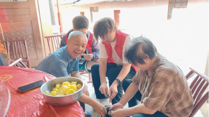 幽居村老党员与学生暖心互动(万泽钦摄)