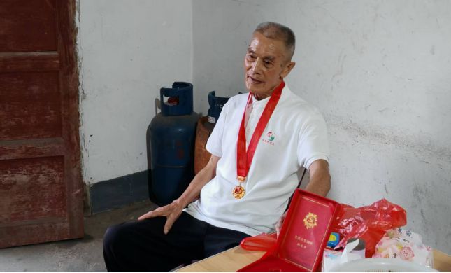 获得“光荣在党50年”勋章的老党员(万泽钦摄)