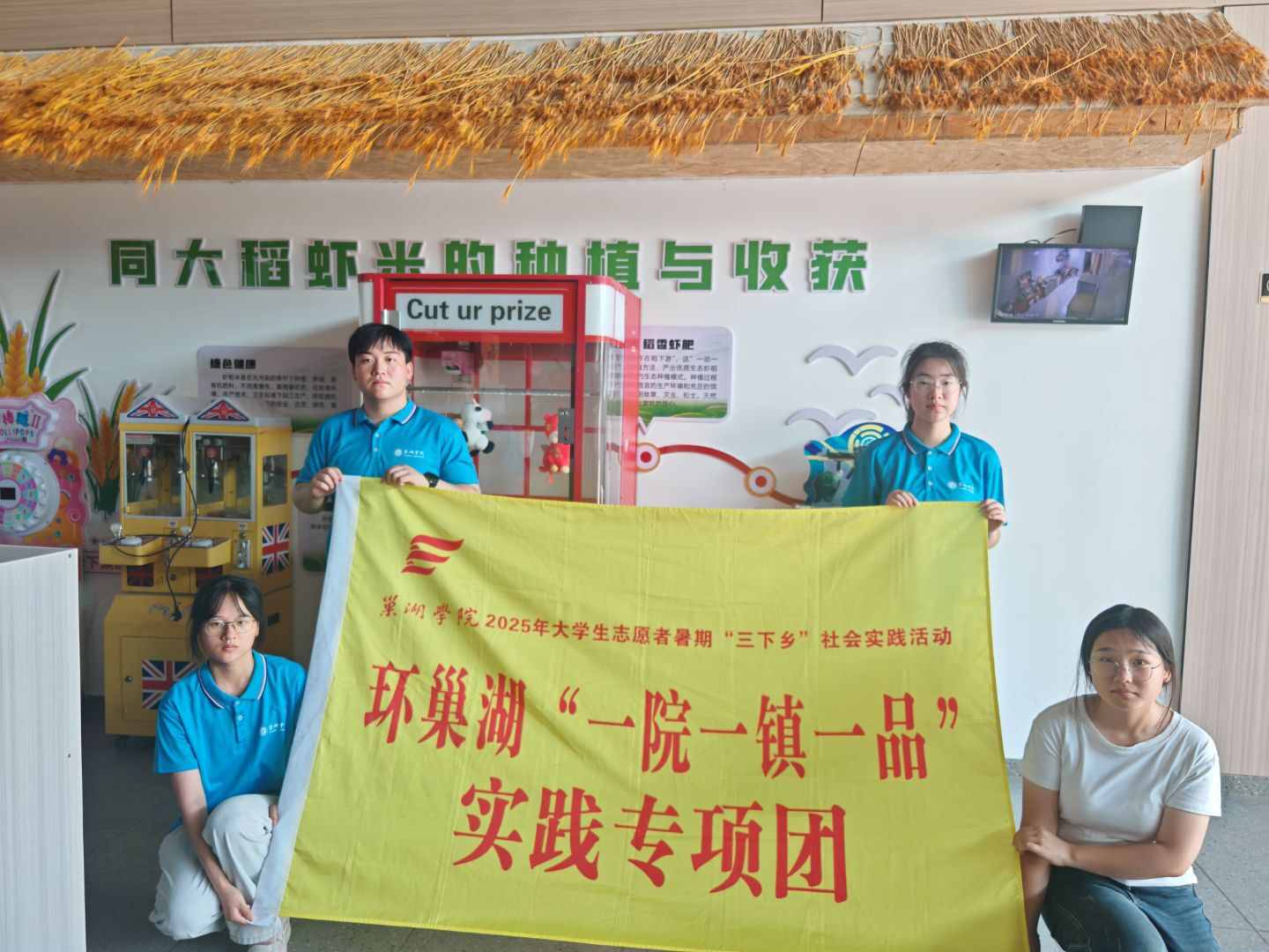 4号上午同大镇相关负责人带领我们驱车来到位于马河村的“小满稻梦空间”实践基地,“小满稻梦空间”位于同大镇马河村,占地面积达5000余亩,是一个集农耕农事观光体验、研学实践教育、水上乐园、水榭民宿及乡村振兴超市于一体的乡村旅游综合区。调研团首先重点考察运用智慧农业技术而生产出来的农产品,团队成员近距离接触并了解这些农产品的生产过程。紧接着,调研团成员在负责人的带领下通过询问和实地探访了解智慧农业在农产品的制造和生产中发挥的作用。最后,调研团成员参观并体验“小满稻梦空间”实践基地里的农耕农事观光体验活动,亲身参与到农业生产中。至此,本次参观活动圆满结束。