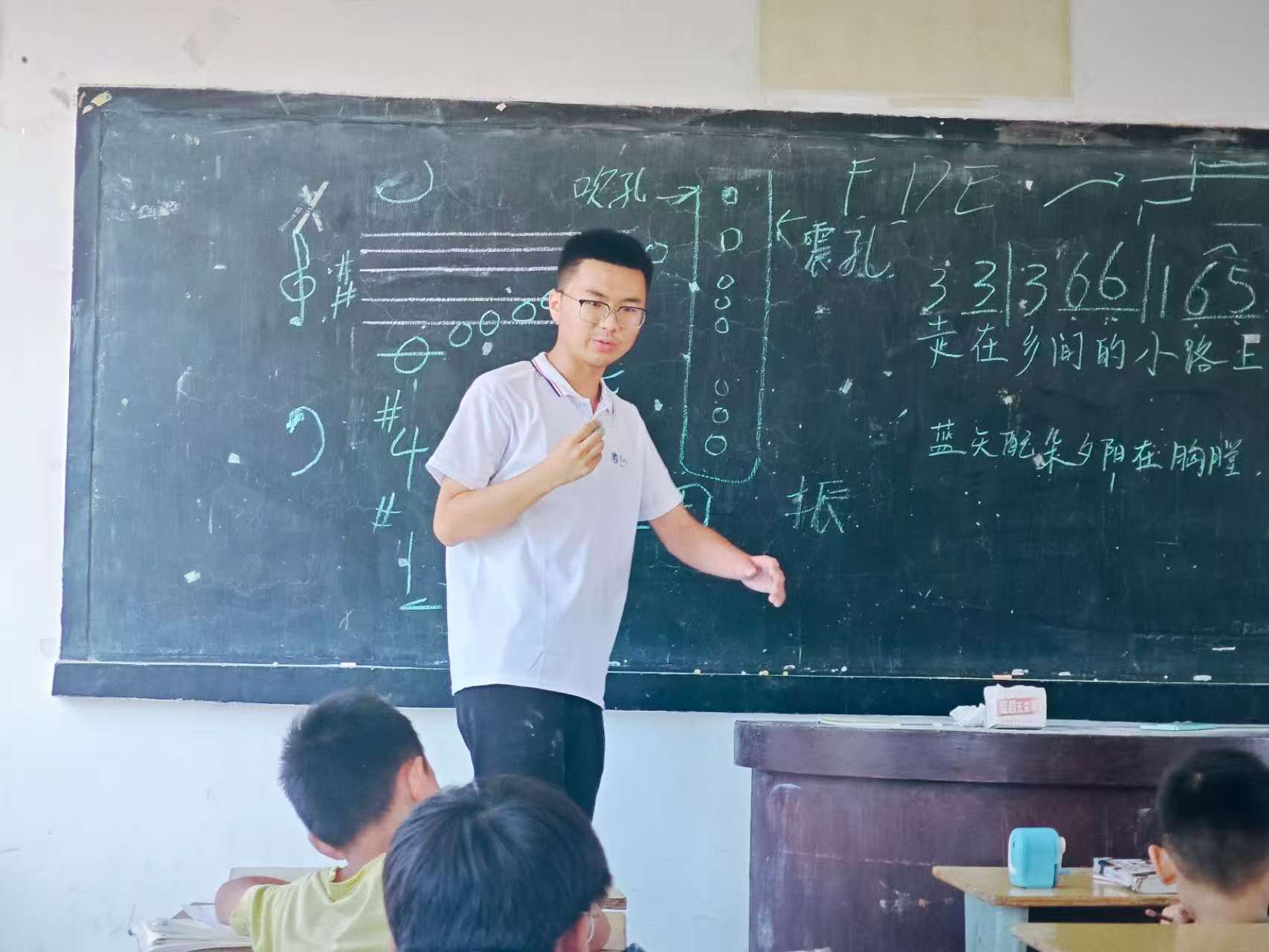 与此同时,志愿者司子弘接过了爱心接力棒,为孩子们带来了一堂别开生面的电子琴课。他详细介绍了电子琴的基本构造和演奏技巧,孩子们听得津津有味,眼中闪烁着对新事物的好奇与渴望。在司子弘的鼓励下,孩子们勇敢尝试,逐渐掌握了基本的演奏方法。当他们成功弹奏出简单的旋律时,脸上露出了自信的笑容,仿佛在音乐的世界里找到了属于自己的舞台。