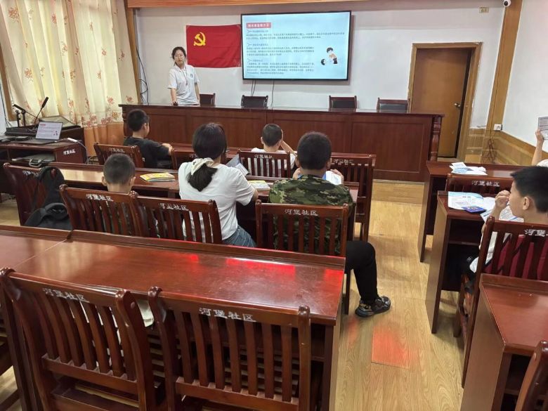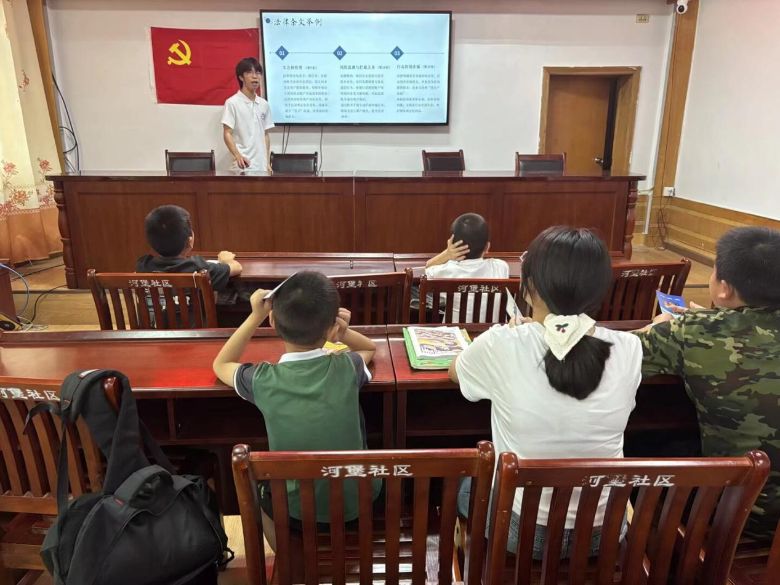 7月8日,实践团开展“急救教育”与“AI反诈”两场讲座,10余名小朋友围坐一堂认真聆听。在急救讲座中,实践团成员结合卡通漫画手册演示气道异物梗阻急救法,现场模仿孩童误吞糖果的应急场景;AI反诈环节则别出心裁,通过情景剧还原“冒充老师索要培训费”等常见骗局,用通俗易懂的语言将所学的知识纳入常态化宣传体系,让“防骗意识”深深扎根民心,让“救命技能”惠及更多苗乡家庭。