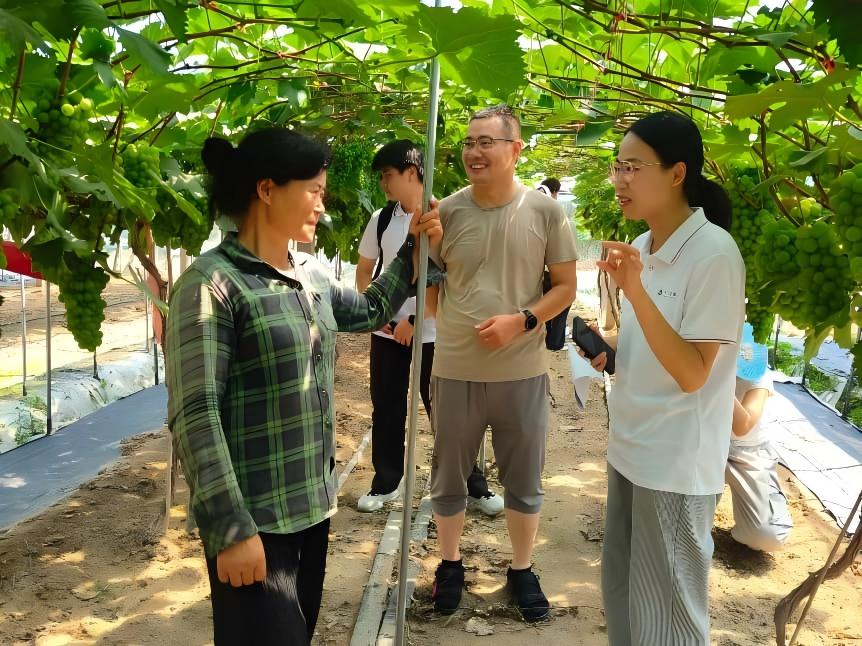 图为同大镇葡萄种植农户与指导老师交流 陈一诺 摄