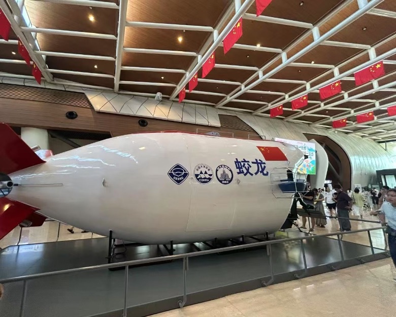 (图2:“智思领航4.0”实践队员观看“蛟龙号模型”。苏佳怡供图)
