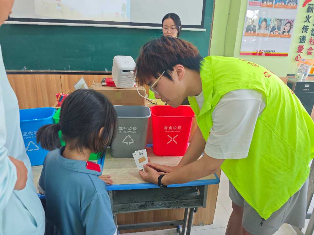 2025年7月4日,淮阴工学院自动化学院益路童行青年团成员赴520志愿者爱心联盟,开展以“文明生活·垃圾分类”为主题的助学活动,以实际行动践行社会责任,展现新时代青年志愿者担当精神。