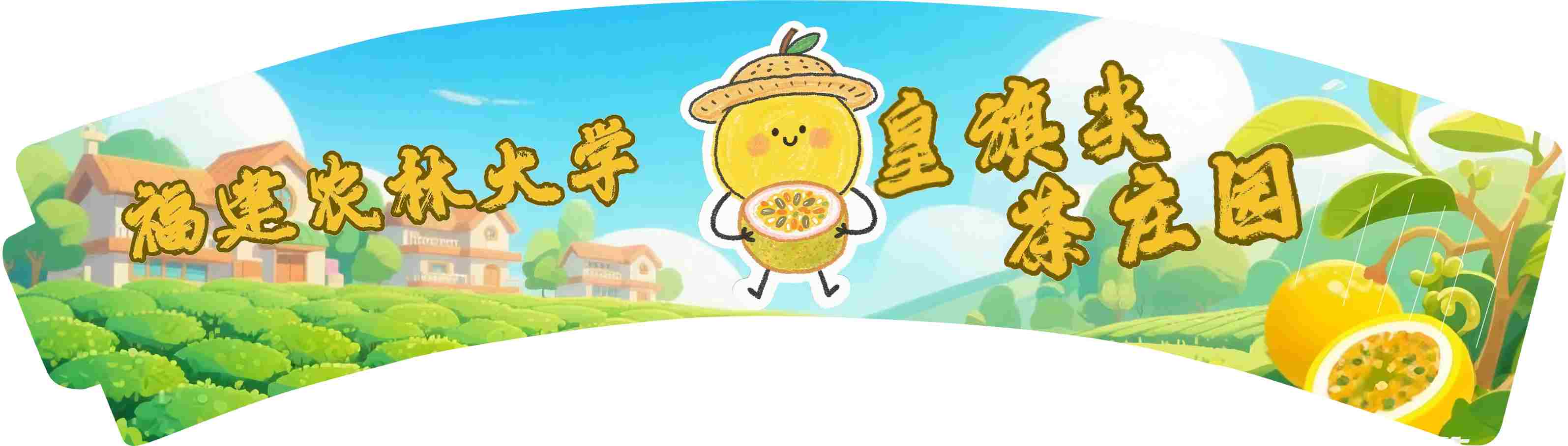 了解到高田村百香果因缺乏独特标识,市场认知度受限,实践队深入挖掘当地种植文化,为百香果设计了专属IP形象,为其赋予老茶农偶然发现并悉心培育出优质百香果苗的温暖故事。IP形象以圆滚滚的黄色果实为造型,头顶棕色草帽,凸显了原生态特质。