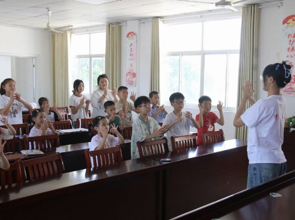 随后,趣味十足的手势舞教学点燃了现场气氛。孩子们兴致勃勃地跟随队员们舞动双手,用灵动的手势诠释着对美好生活的向往与热爱。活动室里笑声此起彼伏,知识与欢乐在轻松愉快的互动中得到了完美传递。