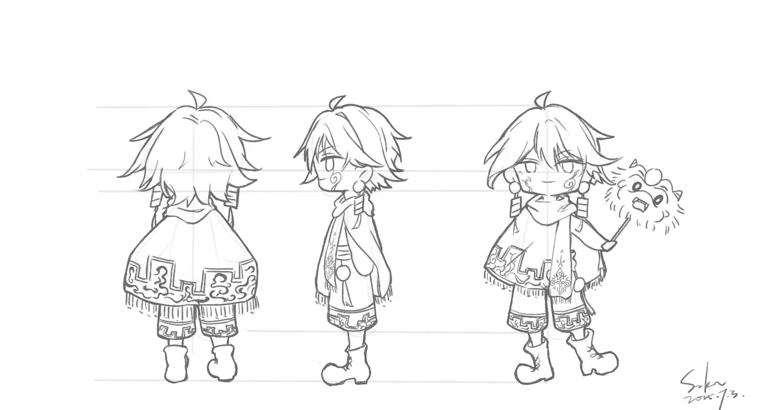 图为设计组成员绘制的IP形象线稿。张绍愉供图