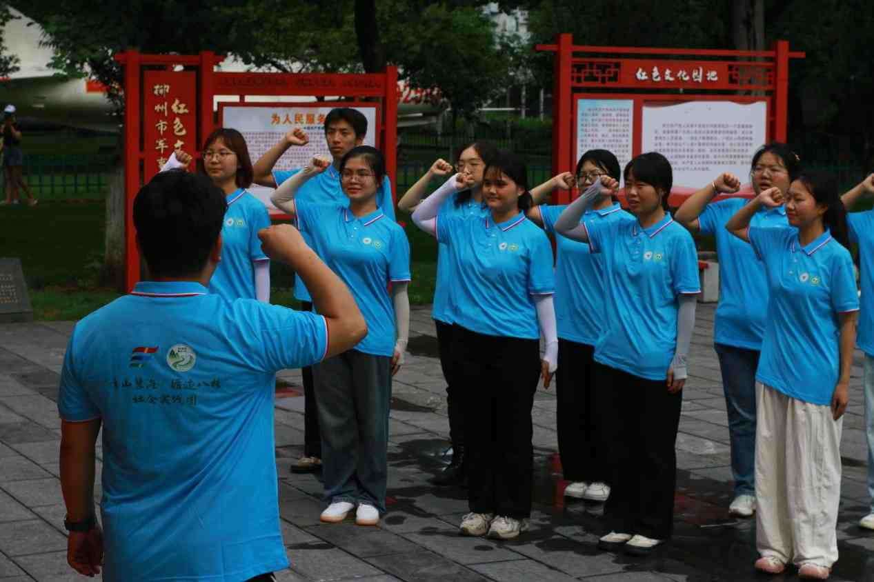 图为实践团成员重温入党誓词(吴明燕 摄)