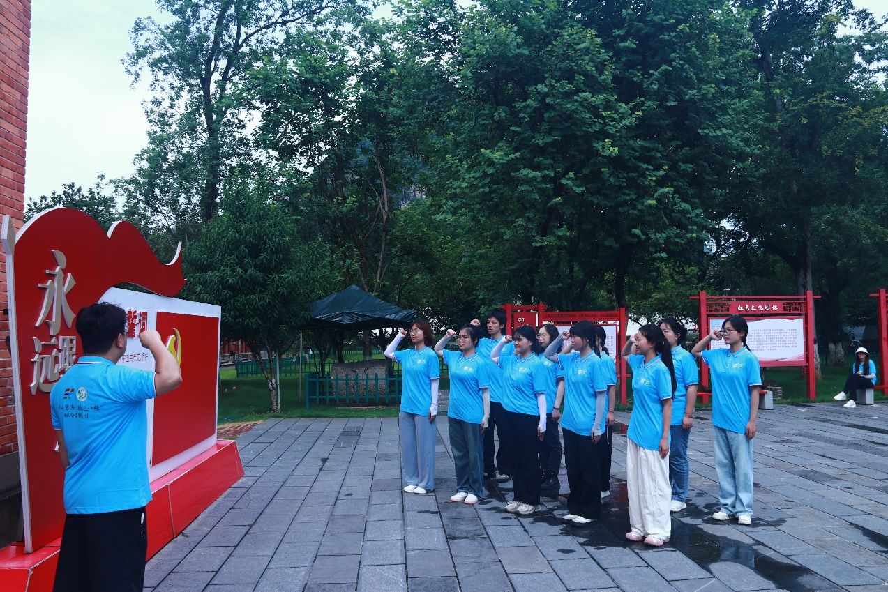 图为苏相丁老师在军事博物园带领党员同志进行宣誓(黄小霞 摄)