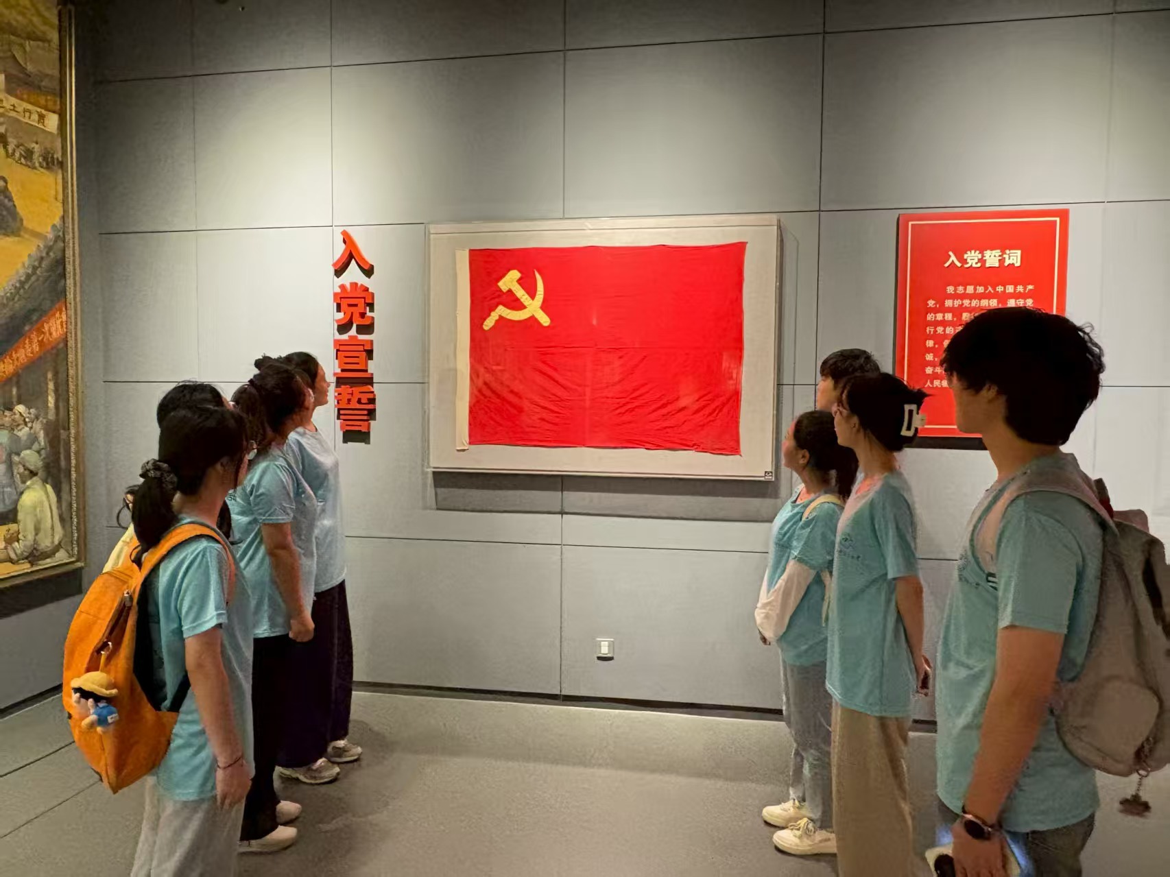 服务之余,实践队走进晋中市博物馆,开启了一场红色文化的精神之旅。在晋中市档案馆“晋中记忆”展厅中,队员们沉浸式参观了“文明传承 古迹遗珍”’“晋商称雄 近代风云”“烽火燎原 走向胜利”“自力更生 探索发展”“富民强市 科教新城”“毓秀钟灵 人文荟萃”“影像晋中 追忆展望”七大主题展区,透过一幅幅泛黄的文献资料、一件件珍贵的历史档案,系统回顾了晋中从革命烽火到改革开放,再到新时代高质量发展的奋斗历程。参观结束后,队员们于鲜红的宣誓墙前列队肃立,共同重温入党誓词。铿锵誓言在展厅回荡,与泛黄的历史档案形成跨越时空的精神呼应。此刻,历史与现实交织,使命与担当传承,誓言的回响里激荡着新时代工会干部踔厉奋发的赤诚豪情。