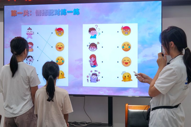 图为“情绪特工队”课程中,队员通过连连看小游戏帮助孩子们识别情绪。林欣榕 供图