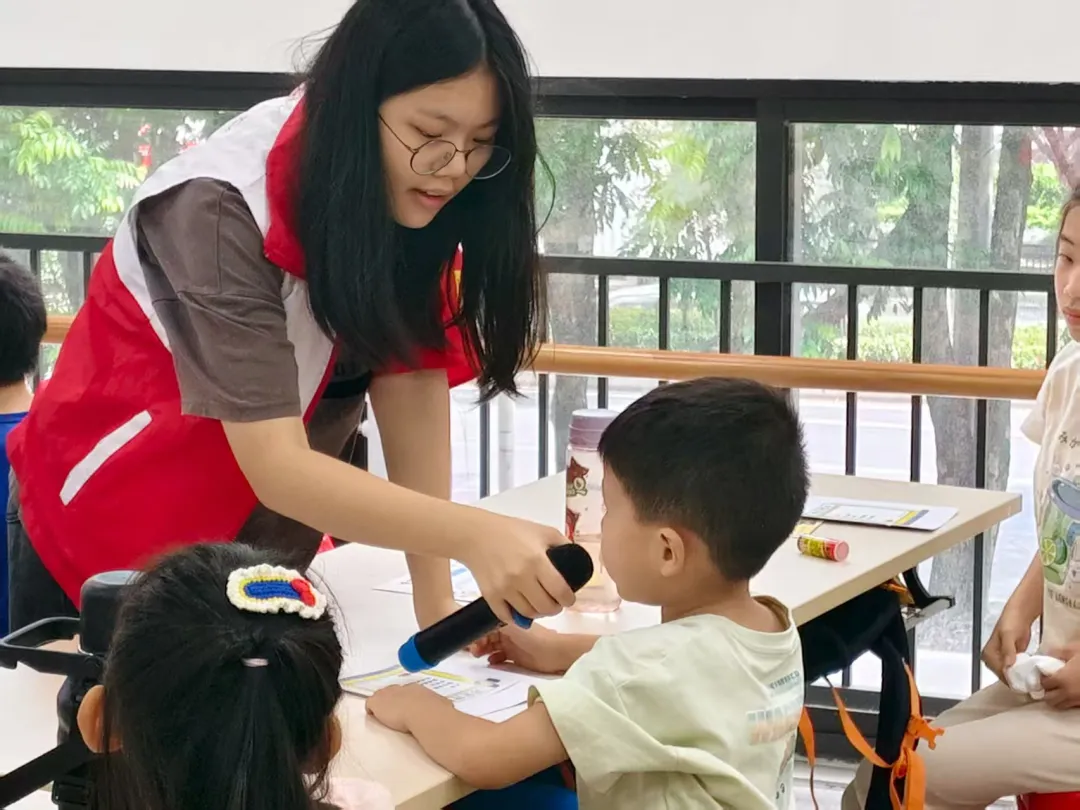 2025年7月15日,华南师范大学物理学院四进永和服务队队员李梓晴在广州黄埔区永和社工服务站为小朋友们开展了一节大气压力科学课堂。该课堂在满足小朋友们的好奇心的同时培养了他们的科学思维和方法,在他们心中种下了热爱科学的种子。