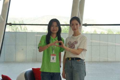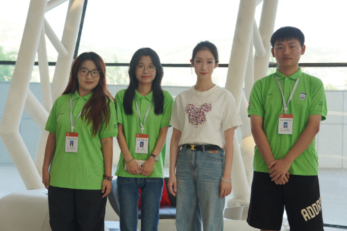 图为实践团成员与艺术团团长合影 陈静涵摄