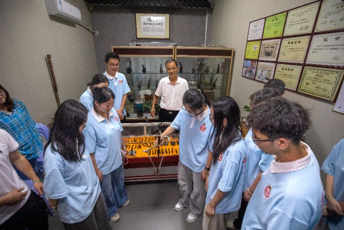 体验结束,队员们采访了非遗传承人,询问非遗传承历程、面临挑战及创新探索。传承人的分享,让队员们加深了对非遗保护重要性的认识,也对习近平总书记在文化传承发展座谈会上重要讲话精神的实践意义有了更深刻理解。