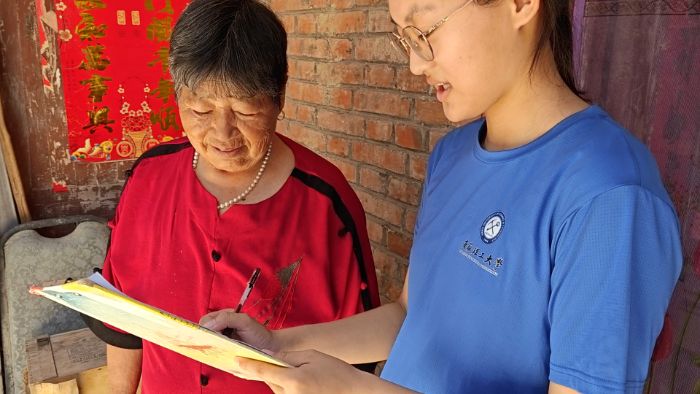 (图为团队成员在当地开展红色文化问卷调查 孟庆梅摄)