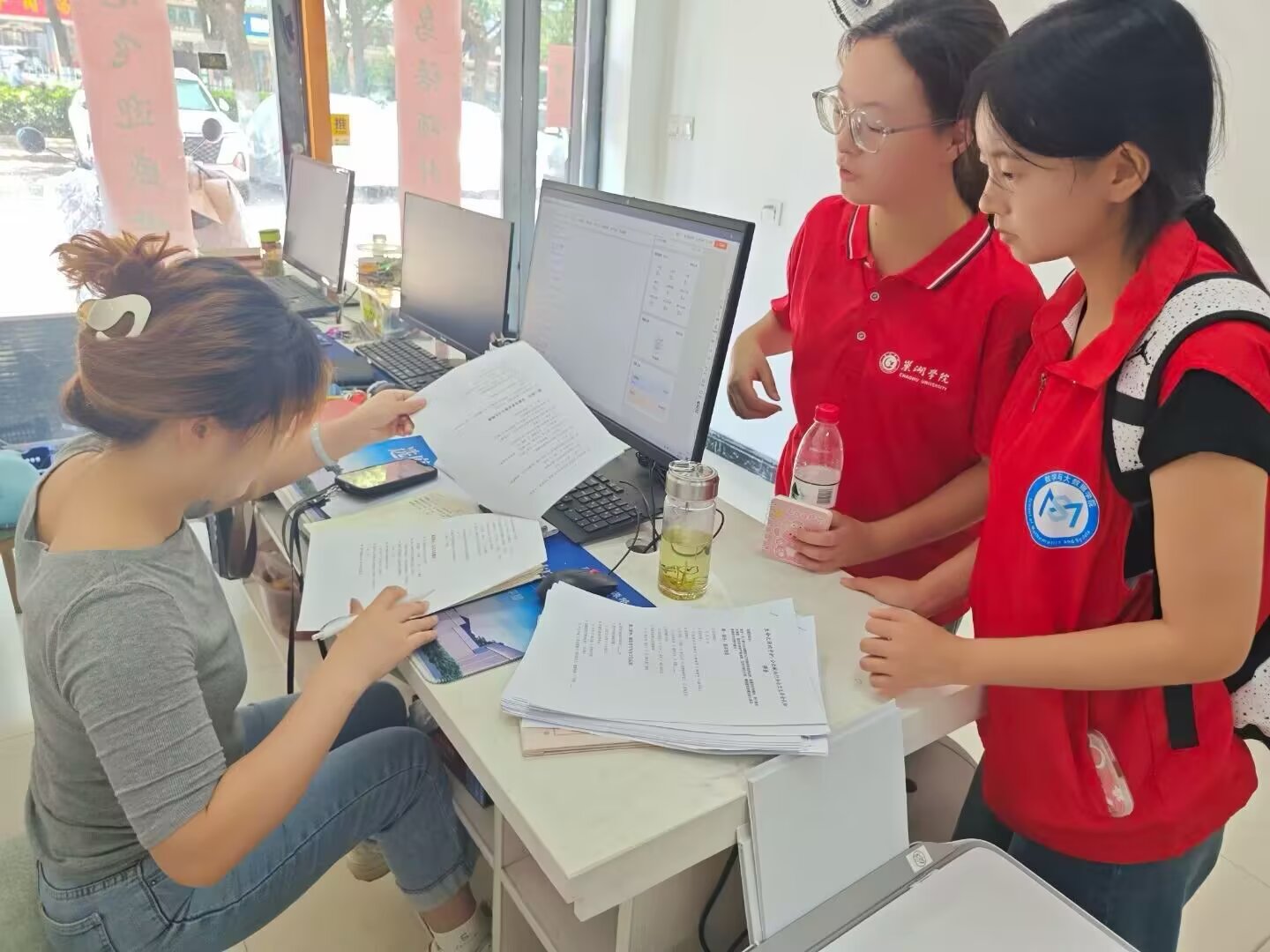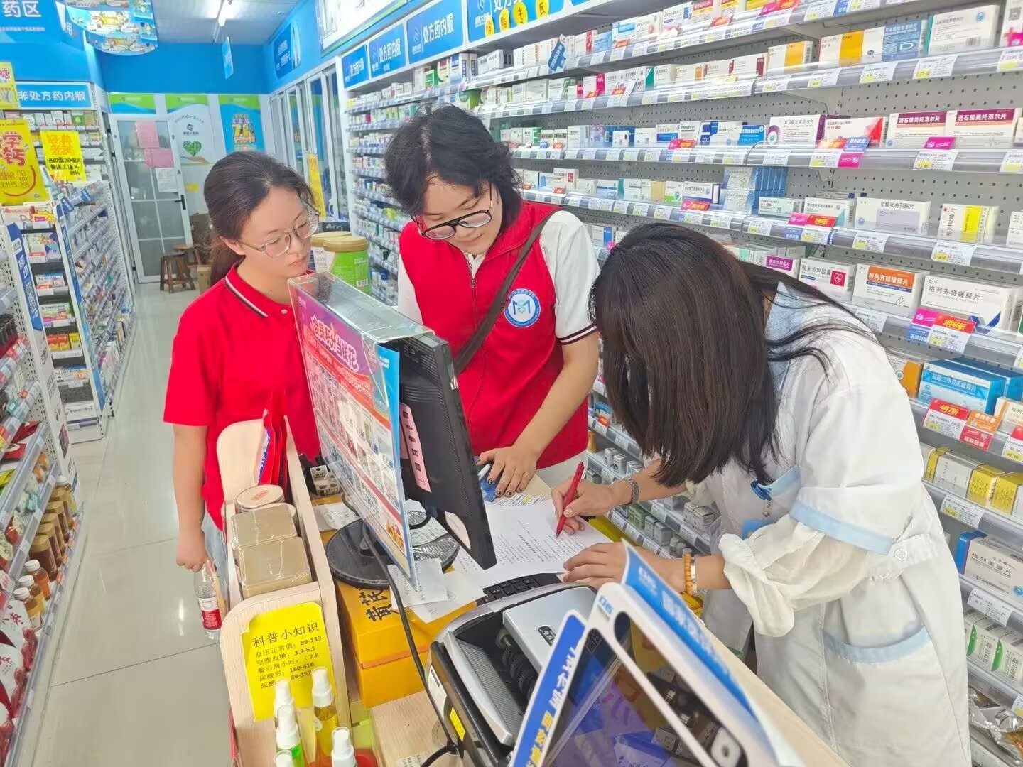 巢湖学院赴巢湖乡镇“献血赋能健康调研”宣传团,半汤诊所发放宣传单和问卷,普及献血相关知识。