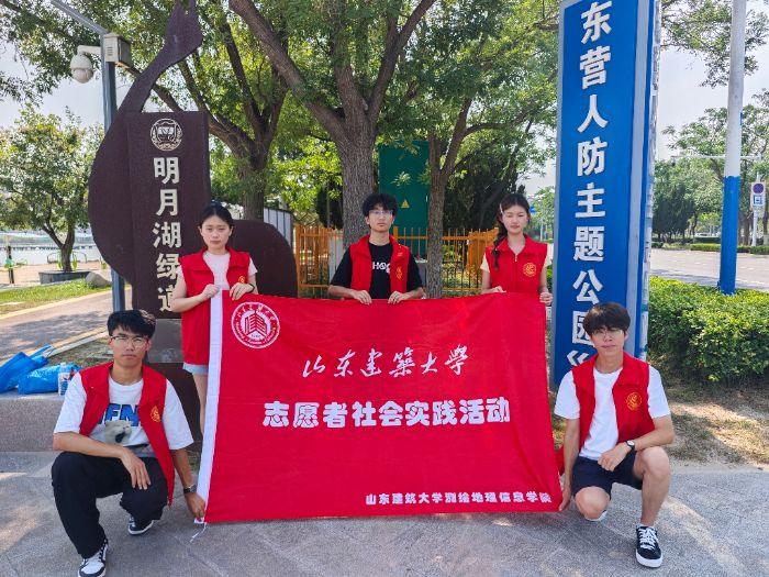 7月14日,黄河入海口的晨雾尚未散尽时,实践团的队员们已经站在石碑前,快门按下的瞬间,他们的笑容与背后摇曳的芦苇、泛红的碱蓬共同定格。旗帜上 “山东建筑大学测绘地理信息学院”的字样在阳光下折射出微光,不仅是对这次实践的肯定,更像是湿地与青年之间立下的无声约定 —— 这份守护,将以传承的姿态延续。