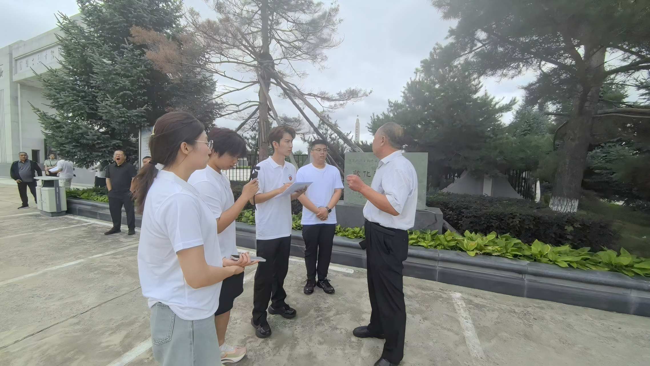 同时,成员们与当地文物保护员进行交流沟通。作为一名退伍军人他说“守护这片承载历史记忆的旧址,是我义不容辞的责任。这里的每一件文物,都见证了先辈们为和平作出的艰辛努力,青年一代应当铭记这段历史,传承先辈精神。”
