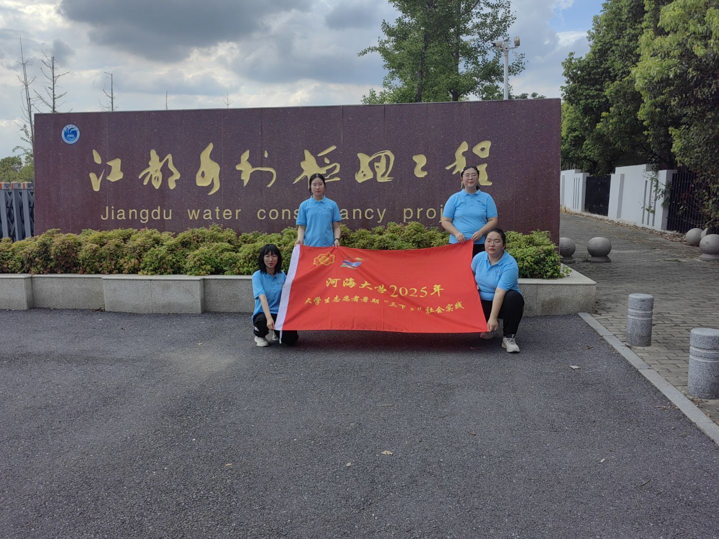 实践团成员在江都水利枢纽门前合影