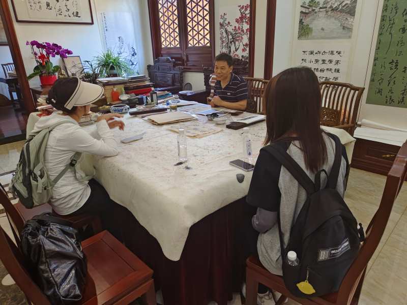 图为成员与熊建卫道长进行交流。通讯员朱洁供图