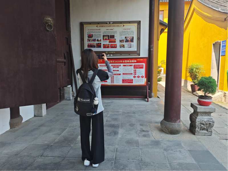 实践团成员朱洁在学习后表示:“这座有千年历史的城隍庙,打破了我对民间信仰场所的刻板印象。它不再是封闭的祭祀空间,而是主动融入新时代,以信仰+公益的模式连接信众与社区,这种转型正是苏州传统与现代结合的生动缩影。”