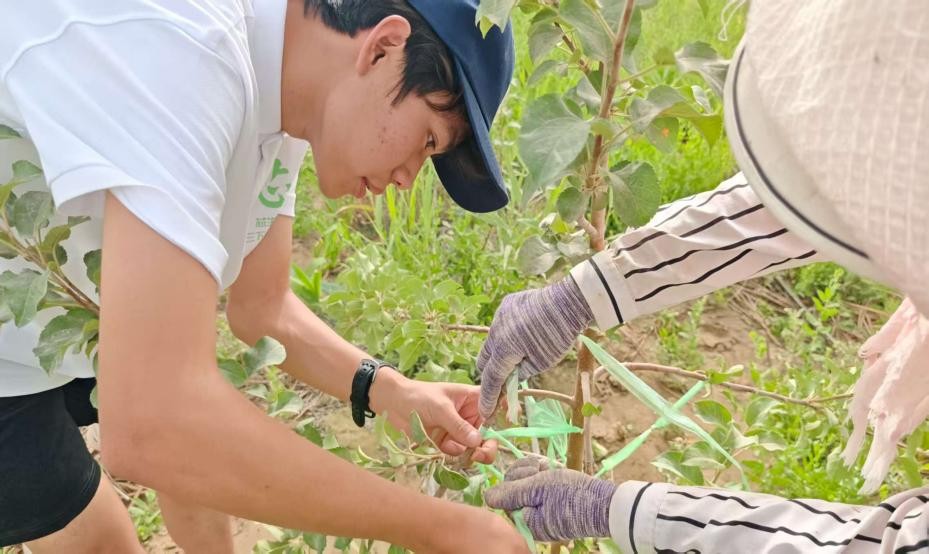 在种树防沙、果树修剪实践活动中,实践团成员们更是热情高涨。在企业工人管理员李军昌老先生的耐心讲解与指导下,大家分工协作,有的挖坑、有的扶树、有的浇水、有的修枝,每一个环节都一丝不苟。尽管天气炎热,但成员们的热情丝毫未减,他们用实际行动为当地的防沙治沙工作贡献着自己的一份力量。在劳动过程中,郑总经理还向大家讲解了种树防沙的技巧和重要性,让成员们深刻认识到防沙治沙对于改善当地生态环境、保障农业生产的关键作用。